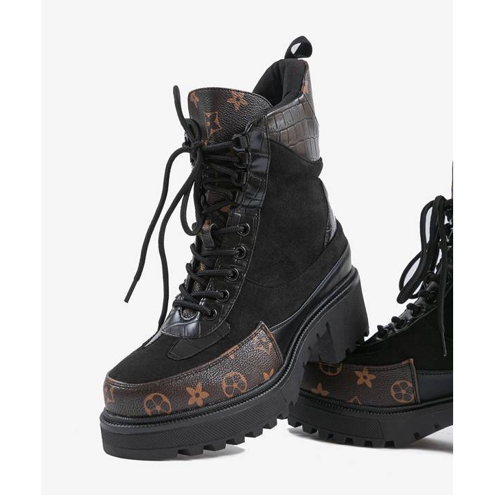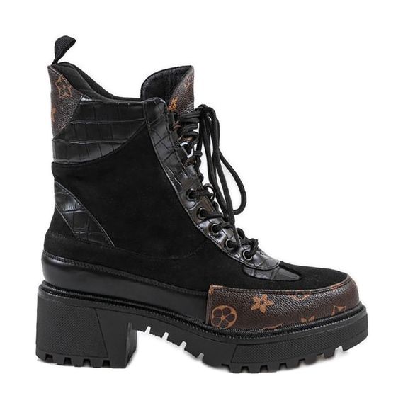 Découvrez des bottes de travail noires uniques avec des empiècements marron qui sont non seulement élégantes, mais aussi extrêmement confortables. Ces bottines à talons bas sont issues d'une collection mondiale où le design classique rencontre les détails modernes. Leur surface en cuir lisse, fabriquée dans un cuir écologique de haute qualité, leur confère un look élégant et tendance, parfait pour un style quotidien.