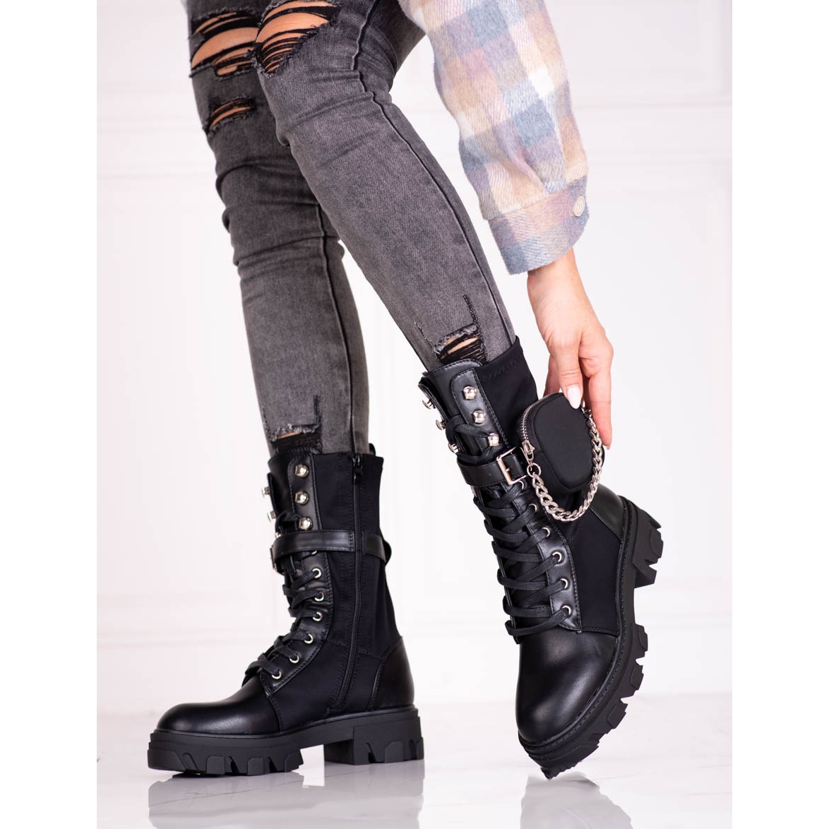 Les baggies noirs pour femmes avec un sac Shelovet sont un choix parfait pour la saison automne/hiver pour les femmes qui apprécient le style et le confort. Ces bottines tendance allient un look décontracté à des détails élégants qui attirent le regard.