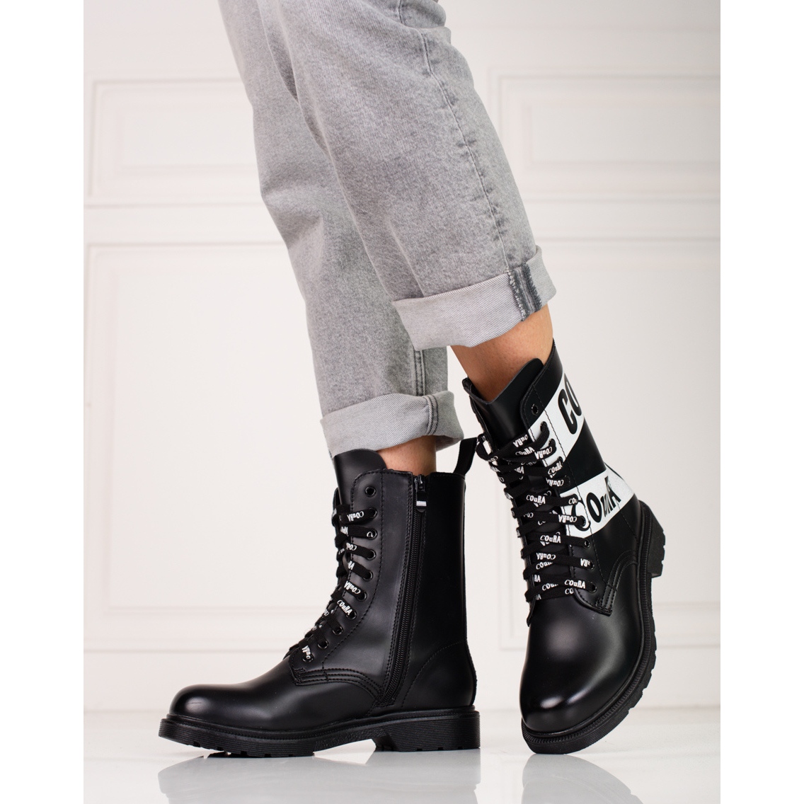 Les travailleurs classiques et noirs sont une proposition combinant un personnage décontracté et rock avec la commodité nécessaire chaque jour. Fabriqué en cuir écologique, avec un insert textile, ils fonctionneront dans des stylisations d'automne-hiver, surtout si vous recherchez "la cheville" avec un design distinct.