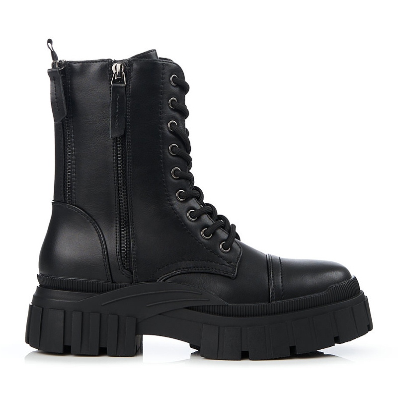 Une nouvelle proposition de la marque respectée SHELOVET - les travailleurs noirs à lacets avec une fermeture éclair décorative sont la quintessence du style urbain allié au confort. Ces bottines pour femmes sont un choix parfait pour celles qui sont passionnées par les solutions de mode originales et qui apprécient également le confort de port.