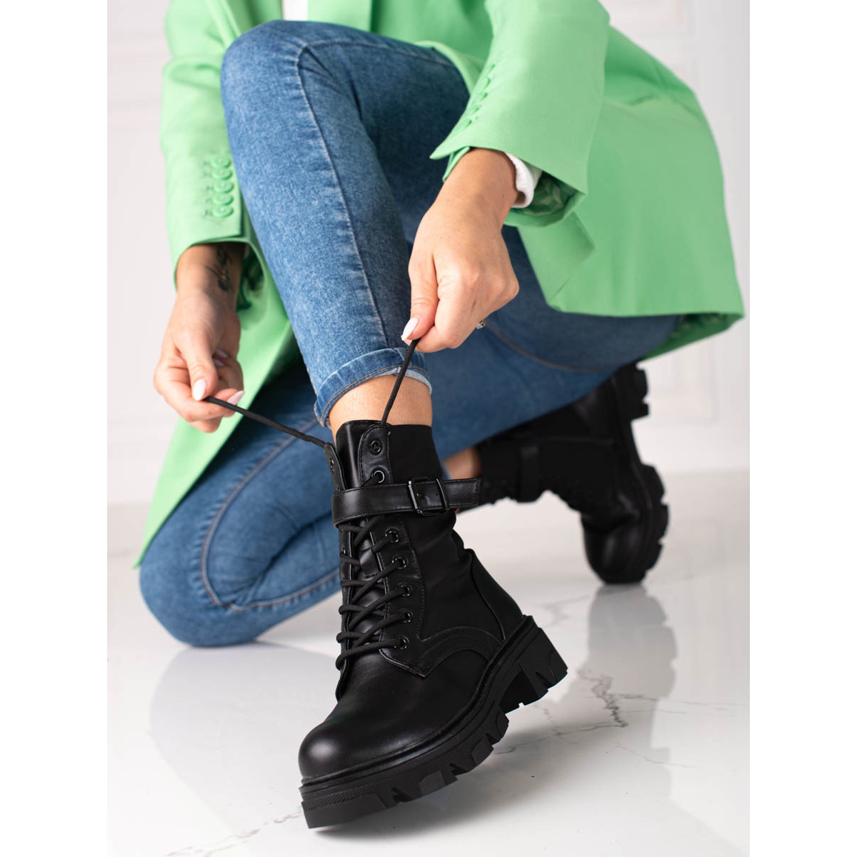 Nous vous présentons les bottes de travail Shelovet noires pour femmes, qui allient parfaitement style et confort. Ces bottes à la mode avec une plateforme épaisse sont le choix parfait pour les journées d'automne et d'hiver, offrant à la fois chaleur et un look tendance.