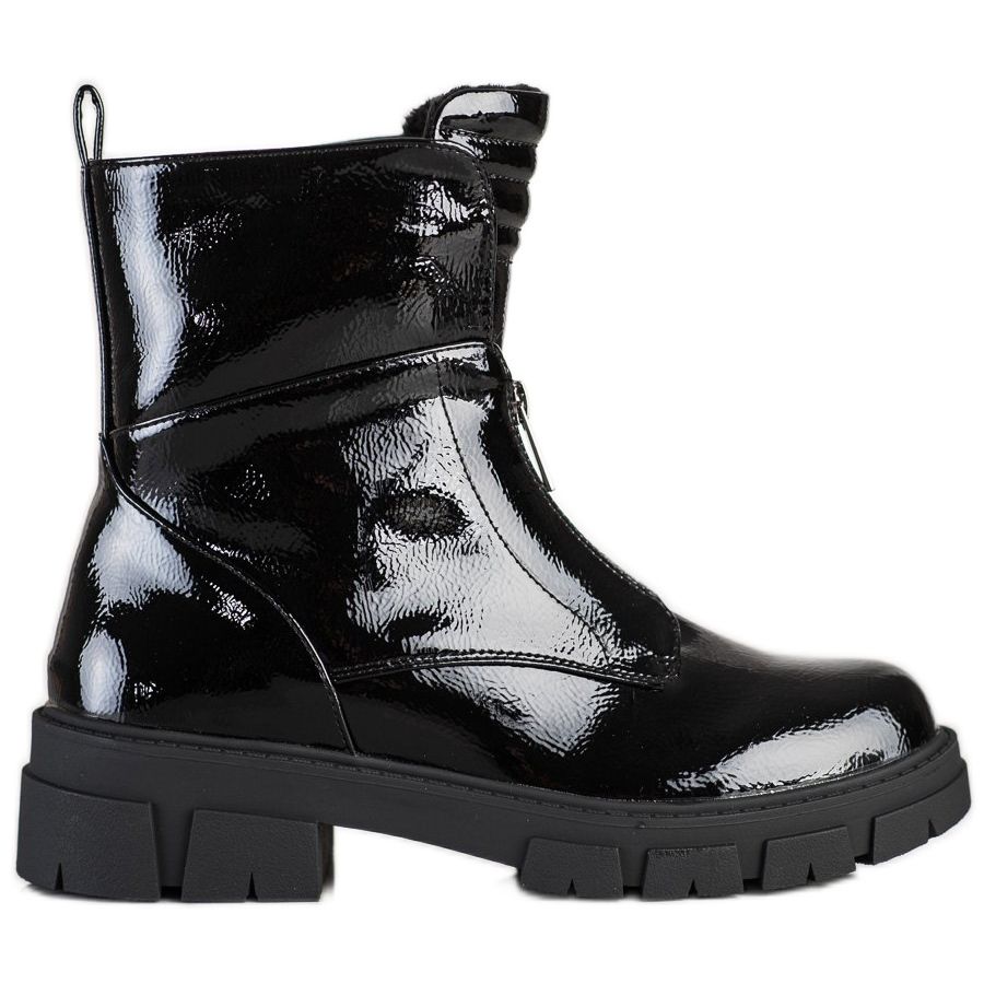 Nous vous présentons les baggies laqués à fermeture éclair de la marque S. BARSKI, qui seront un complément parfait à tout style de tous les jours. Ces élégantes bottines noires se caractérisent par un style tendance, décontracté et rock, parfaites pour l'automne et l'hiver.
