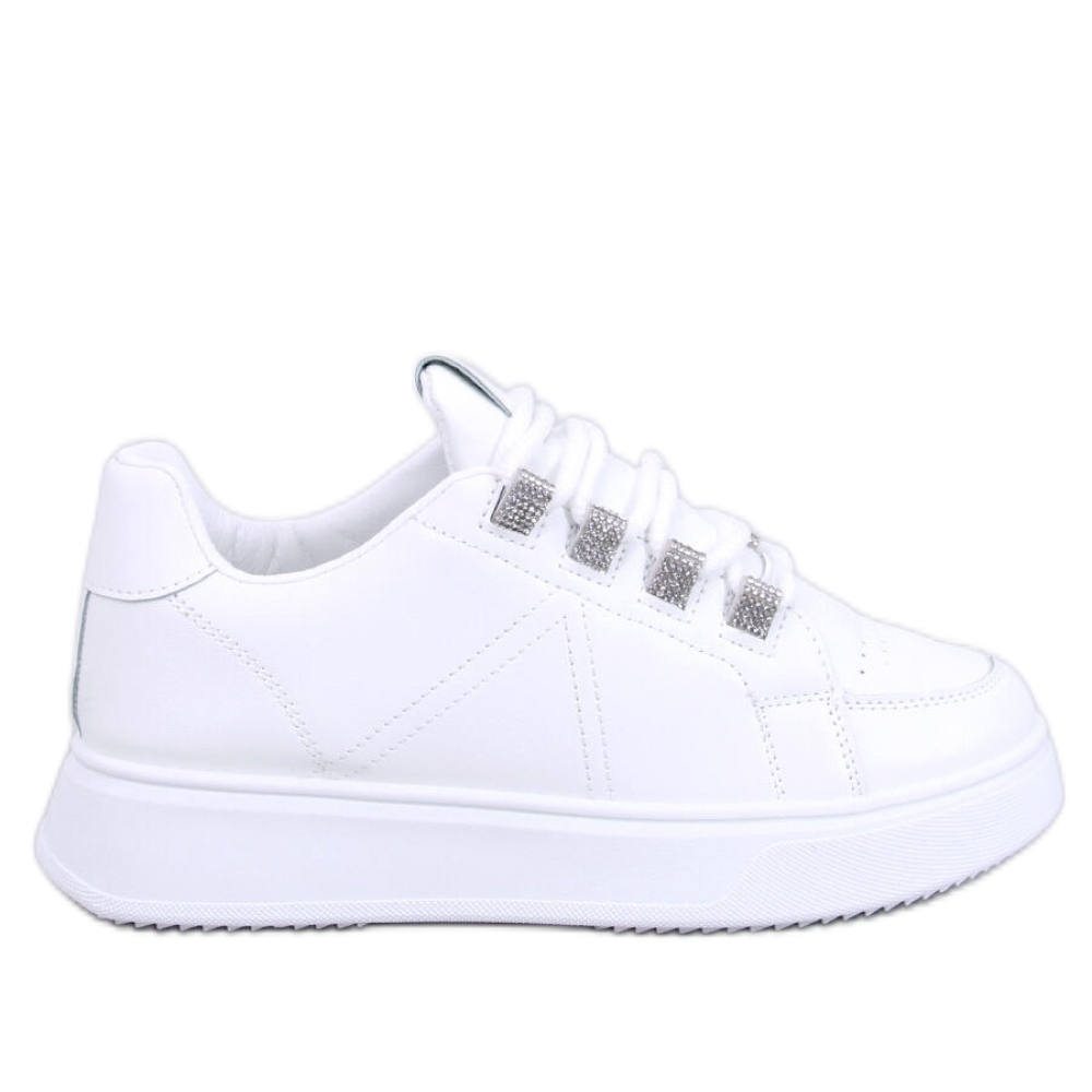 Les baskets avec des lacets blancs épais de Sadri d'Inello sont le choix parfait pour chaque femme qui veut combiner le style et le confort. Ces chaussures de sport blanches sur une semelle haute se distinguent par le design le plus à la mode qui attire l'attention. Des lacets épais et des strass brillantes subtiles leur donnent une élégance, ce qui les rend parfaits pour les deux jours et pour les occasions spéciales.