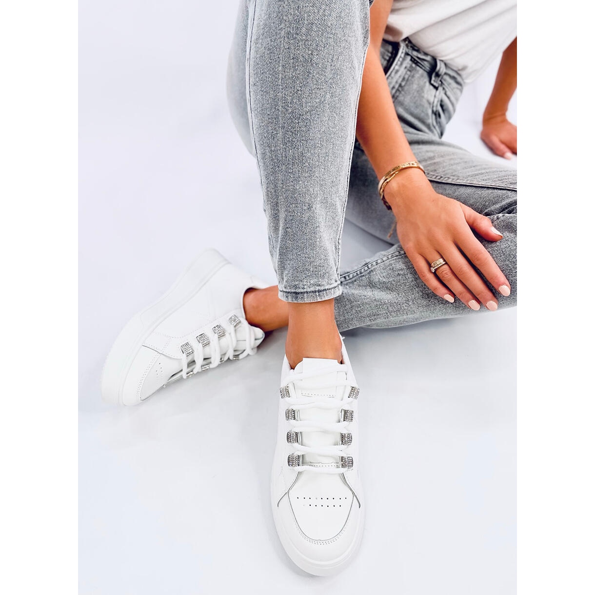 Leur accent d'origine est de belles strass brillantes, qui attirent l'attention et donnent une élégance à chaque étape. Les baskets sont en cuir écologique de haute qualité, ce qui les rend respectueux de l'environnement et, en même temps, faciles à se soucier. La semelle intérieure en tissu offrira un confort optimal et les couleurs blanches font que ces chaussures se combinent facilement avec différents vêtements.