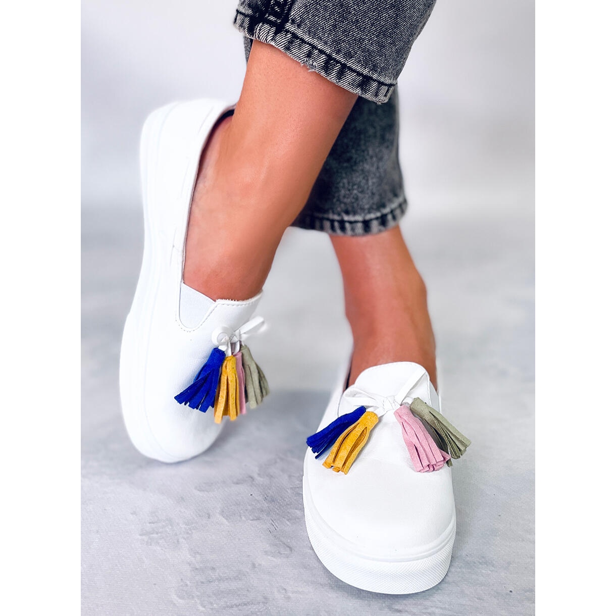 Les baskets de printemps Salma White à franges de BM sont un choix parfait pour les femmes qui apprécient l'originalité et le confort. Ces chaussures à enfiler élégantes dans une belle couleur blanche séduisent par leur design bohème tendance, parfaitement adapté aux tendances printanières. Les franges leur confèrent un caractère unique, elles attireront donc certainement l'attention de leur entourage.