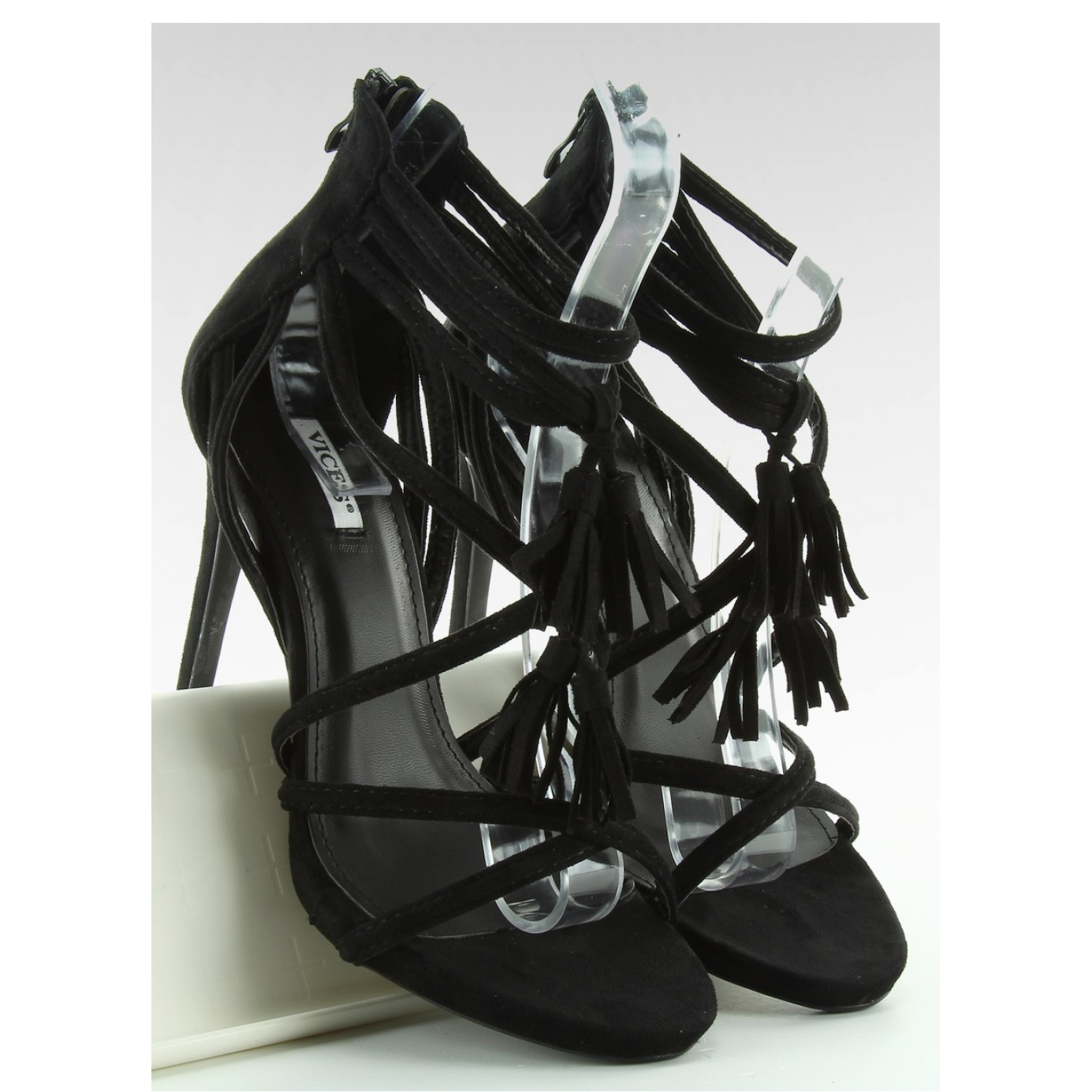 Sandales sur une épingle avec franges 1249 Black d'Inollo est le choix parfait pour les femmes qui veulent ajouter un peu d'élégance et de style à leur style. Ces belles sandales noires sur une hauteur de 11 cm de haut étaient soigneusement faites de daim écologique, ce qui les rend non seulement élégantes, mais aussi respectueuses de l'environnement.