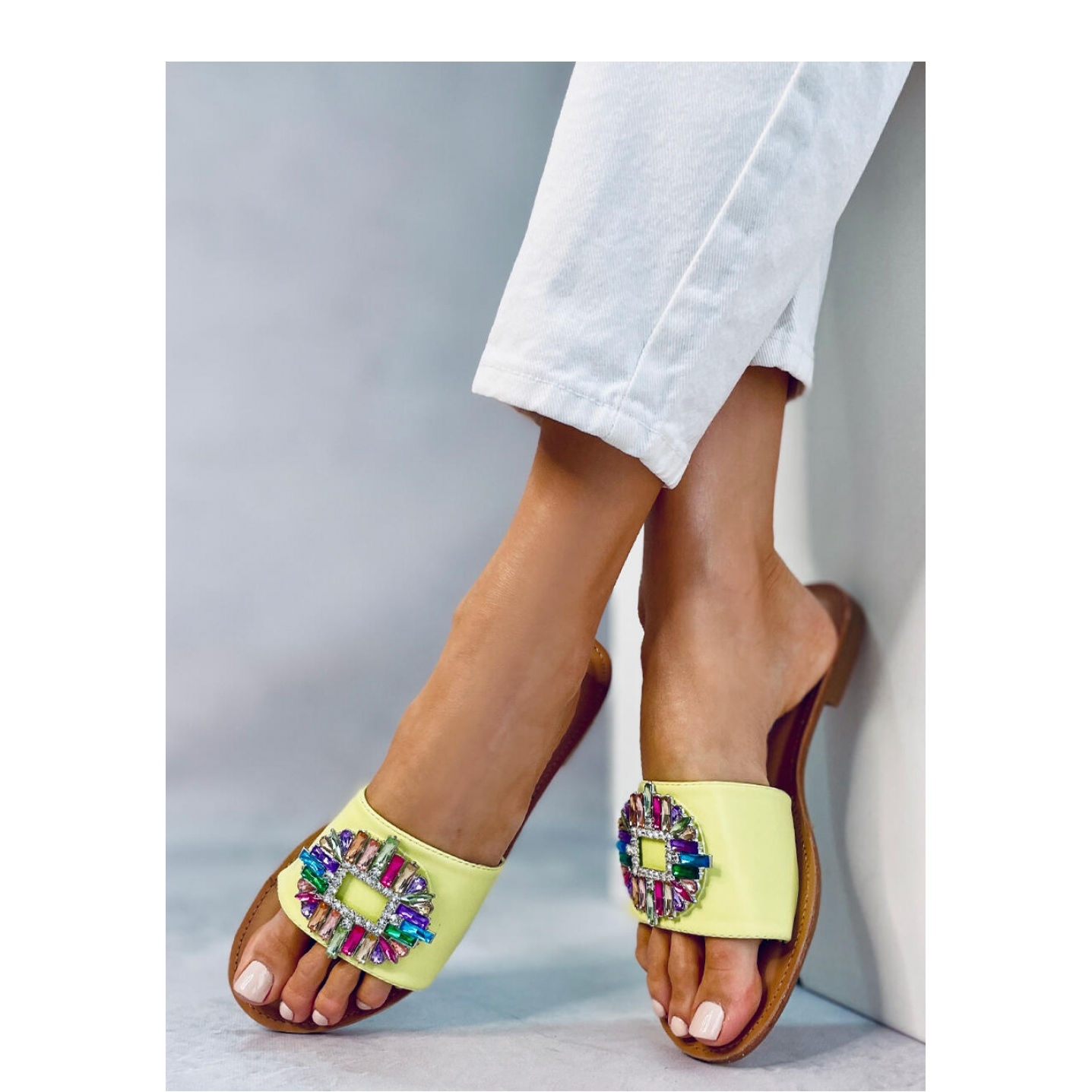 Détails: Sandale Tongs avec pierres colorées Lowell Vert - Inello