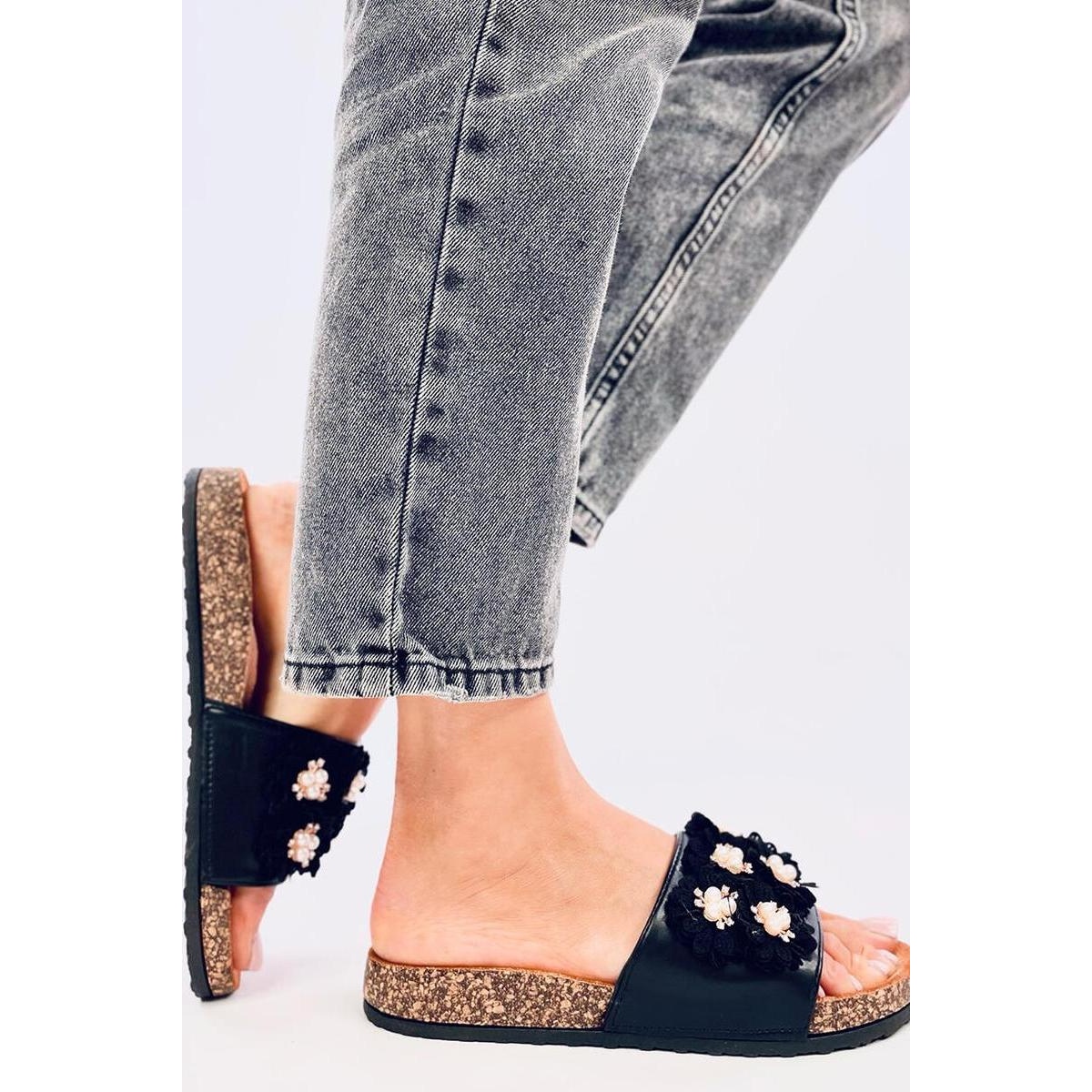 Les tongs de liège de sandale avec des fleurs Emiles Black - Inello sont une proposition idéale pour les femmes qui veulent combiner le confort avec un look à la mode. Ces tongs noirs se distinguent non seulement par le cuir et le tissu écologiques de céréales, mais aussi avec des fleurs charmantes décorées de perles et de zircons brillants, ce qui attirera certainement tous les regards.