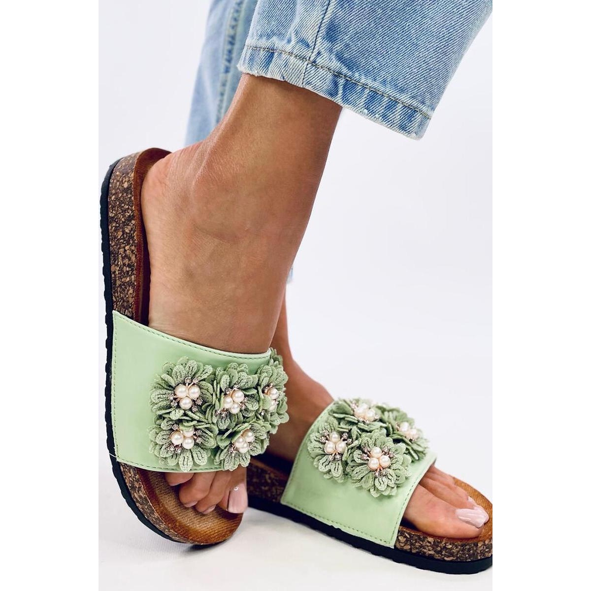 Découvrez l'élégance estivale avec des sandales en liège de liège Emiles Green d'Inello! Ces tongs charmants pour femmes dans une belle couleur verte sont un excellent choix pour chaque aventure de vacances. Des fleurs phénoménales décorées de perles et de zircons brillants leur donnent un charme unique, qui volera certainement votre cœur.