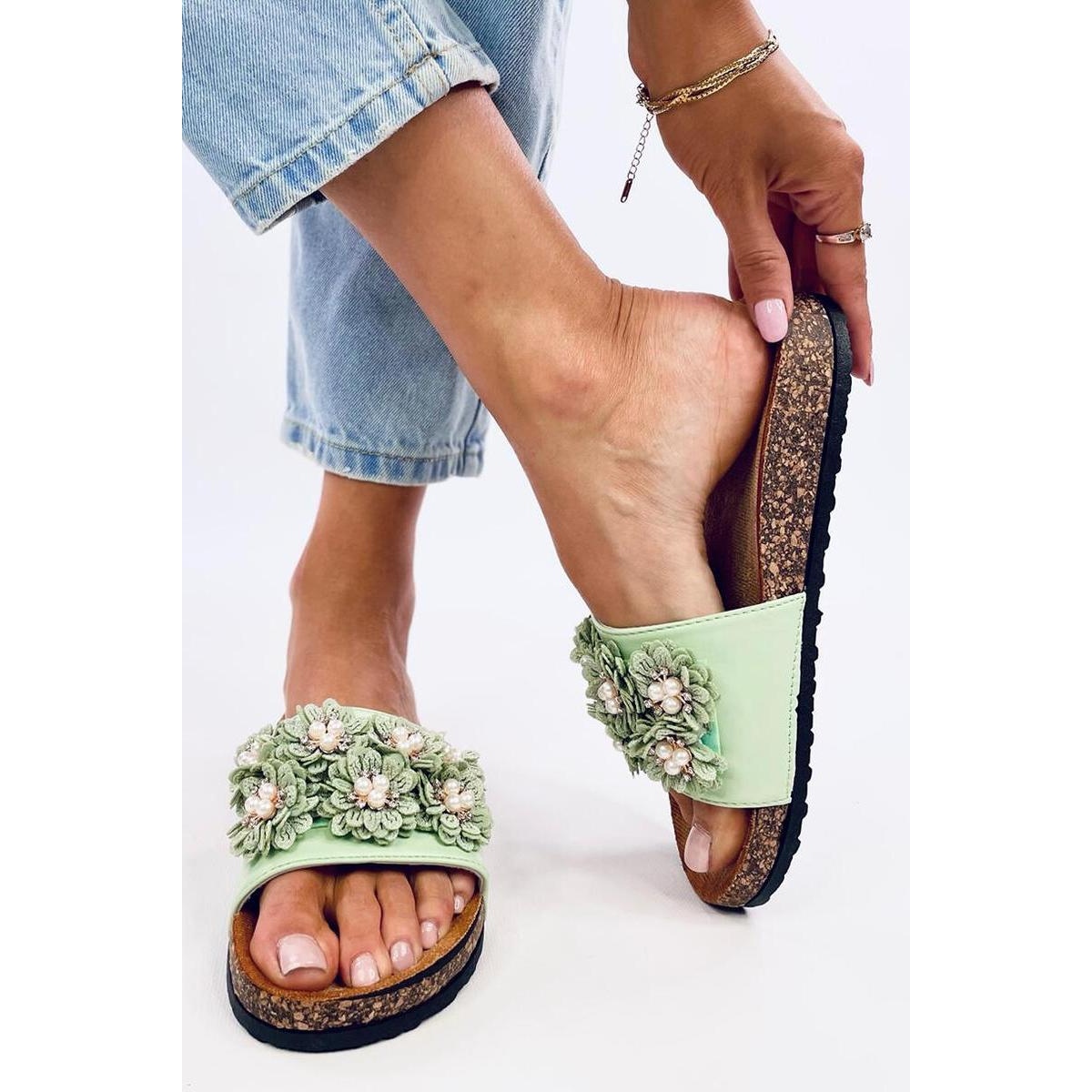Inello Sandale Tongs en liège à fleurs Emiles Vert - Inello