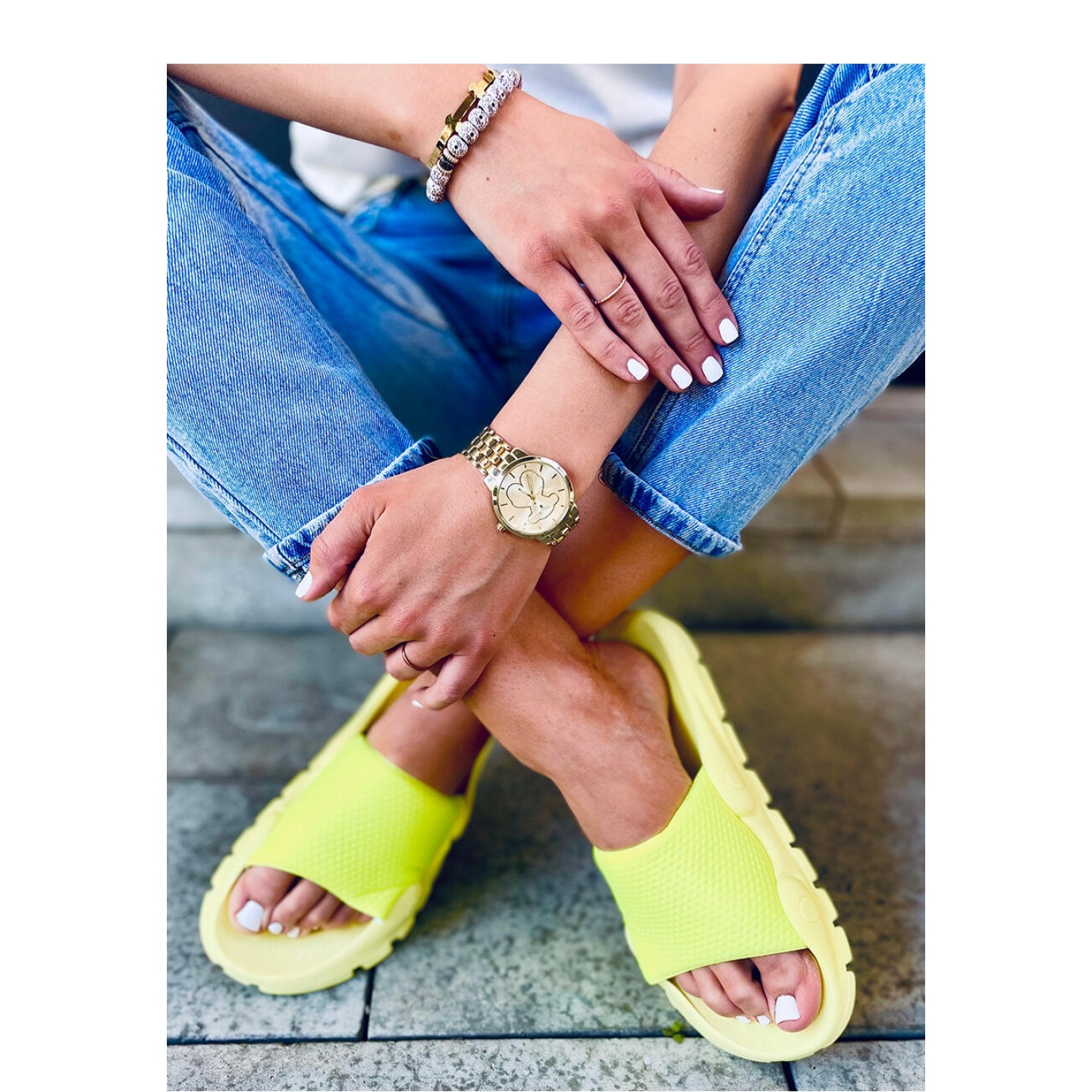 Découvrez la joie et la commodité grâce aux grume-cars des femmes Sandals jaune d'Inello! Ces tongs élégants dans une couleur jaune intense sont le choix parfait pour chaque femme à la mode qui veut combiner le confort avec les dernières tendances.
