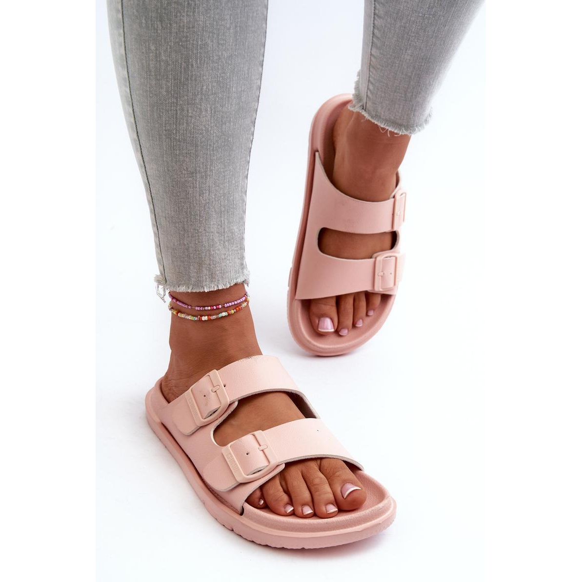 Les rayures réglables permettent une correspondance individuelle à la forme du pied, ce qui augmente le confort et la stabilité lors de la marche. Grâce à la hauteur de la semelle de seulement 2,5 cm, les tongs sont non seulement pratiques, mais ajoutent également la légèreté à chaque étape.