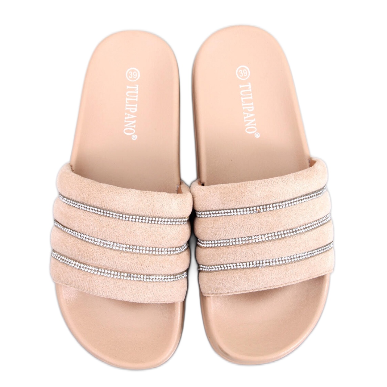 Découvrez la nouvelle dimension du confort et du style avec nos volets de sandales avec des zircons beige! Ces tongs élégants pour femmes sont faits de daim écologique, ce qui fournit non seulement une impression agréable au toucher, mais aussi une attention à l'environnement. Une large semelle en caoutchouc garantit une excellente poignée et un confort à chaque étape.