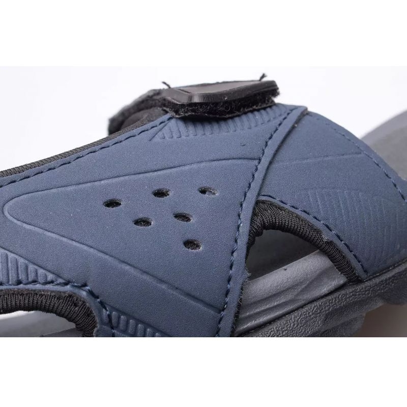 La fermeture fermeture scratch permet un enfilage facile et rapide, et la couleur bleu marine universelle avec des accents noirs rend ces sandales faciles à combiner avec une variété de styles.