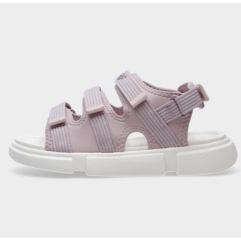 Sandales 4F féminin élégantes et confortables dans une couleur rose à la mode, créée pour des activités estivales. La combinaison de sports coupées avec des performances solides rend ce modèle parfait pour les stylisations urbaines et lors de voyages légers dans le sein de la nature.