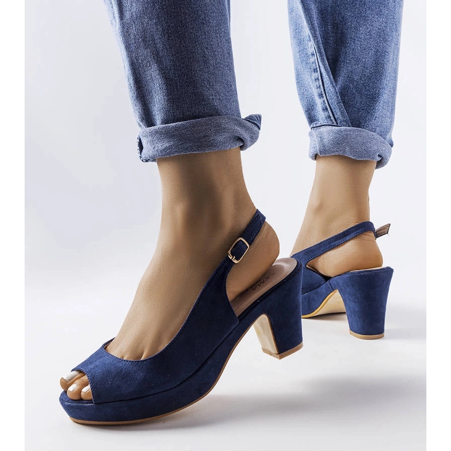 Détails: Sandales à blocs bleu marine de Dionne