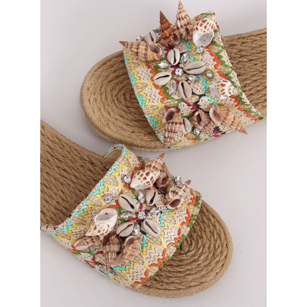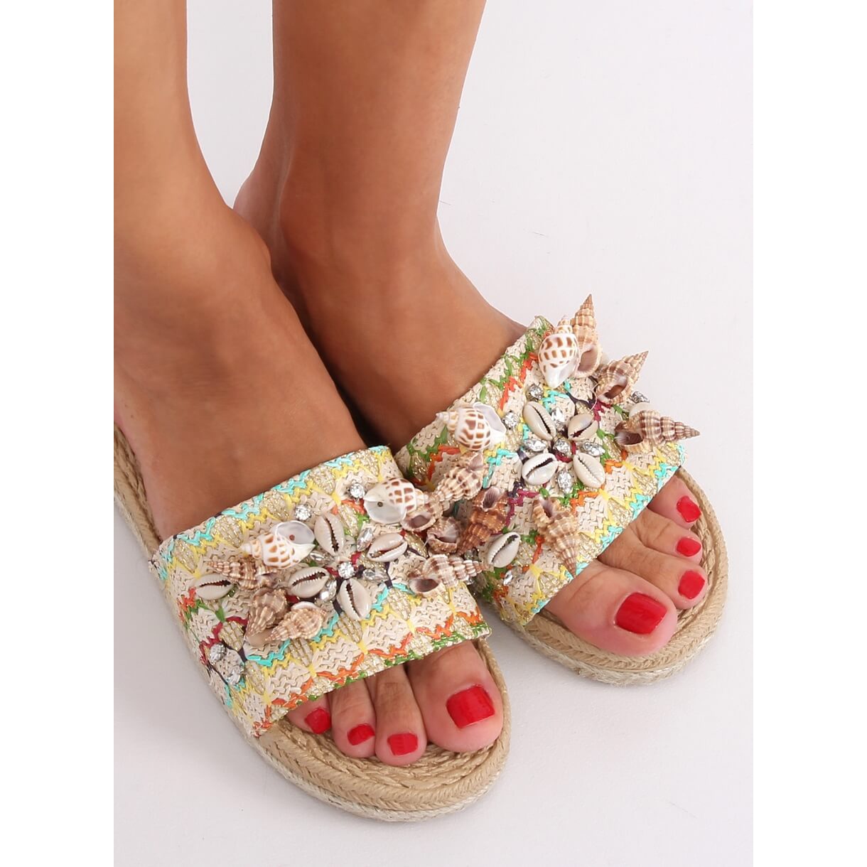 Qu’est-ce qui distingue ce modèle ? Tout d’abord, des décorations impressionnantes ! De nombreux coquillages et pierres brillantes confèrent aux tongs un caractère unique, évoquant des associations avec la plage, le soleil et la détente en vacances. De plus, le cordon en lin autour de la semelle leur confère une finition subtile et élégante.
