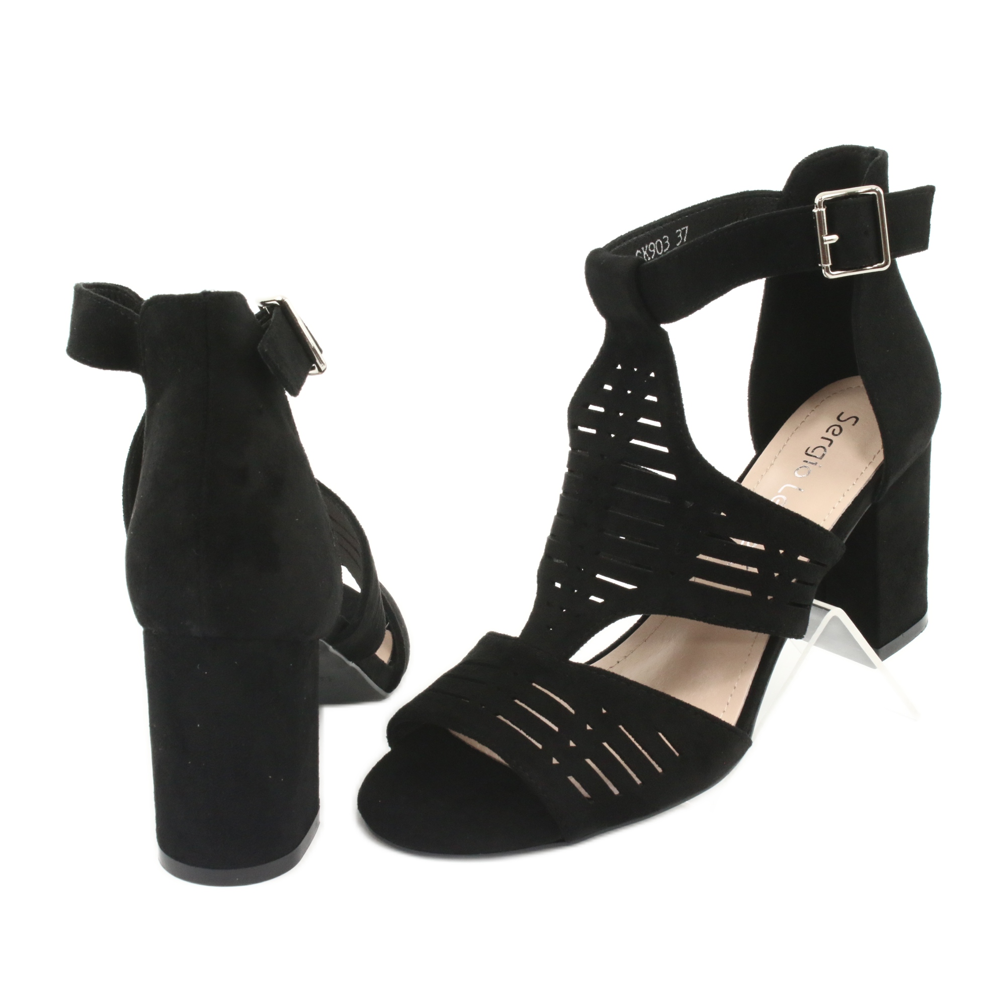 Découvrez l'élégance et le confort à portée de main avec les sandales à tige en daim Sergio Leone SK903 de couleur noire classique. Ces sandales ajourées pour femme allient style et confort, ce qui en fait le choix parfait pour diverses occasions. Fabriqués en éco-cuir suédé de haute qualité, avec un insert en cuir bien pensé, ils assurent un ajustement et un confort de port parfaits.