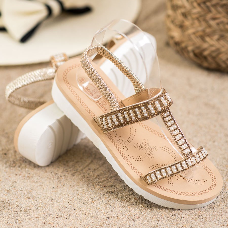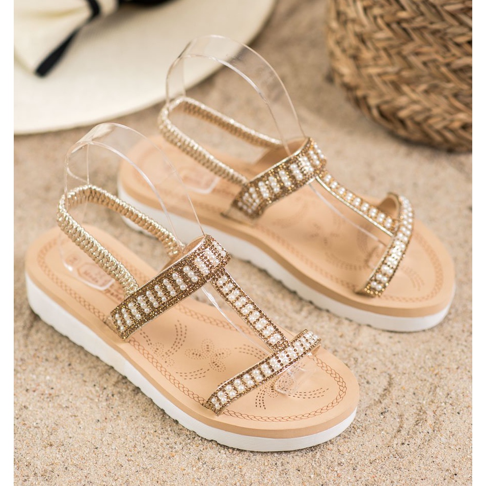 Détails: SHELOVET Sandales à enfiler avec perles jaune