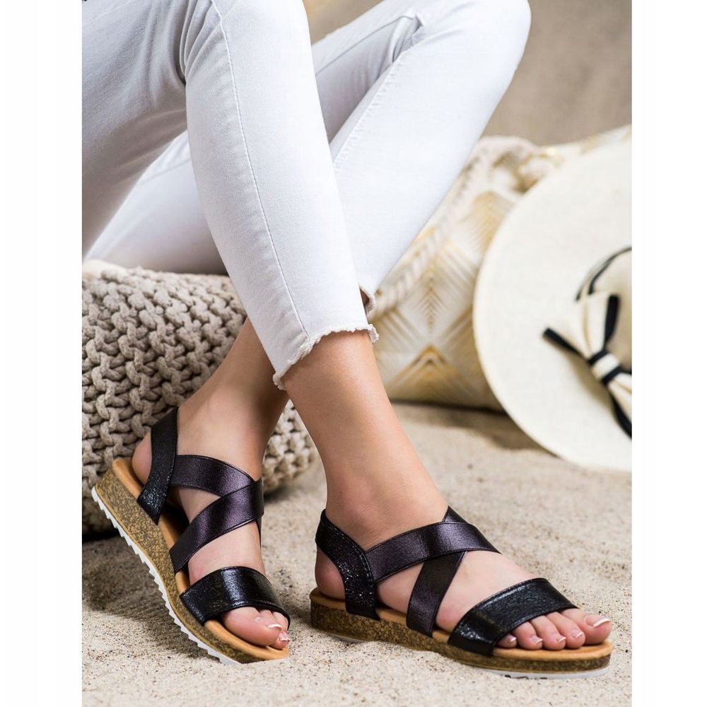 Kayla Sandales à enfiler avec une bande élastique noir