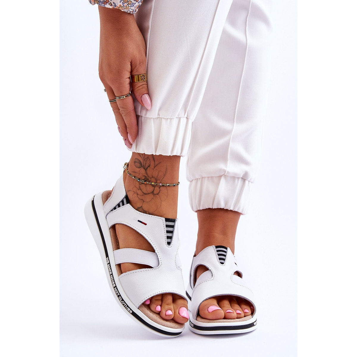 Le blanc classique avec des accents noirs supplémentaires rend ces sandales faciles à intégrer dans n'importe quel style estival, des robes aérées aux jeans décontractés. Grâce à leur minimalisme et leur élégance, ils constituent un choix parfait pour toute femme qui valorise l'universalité et le chic.