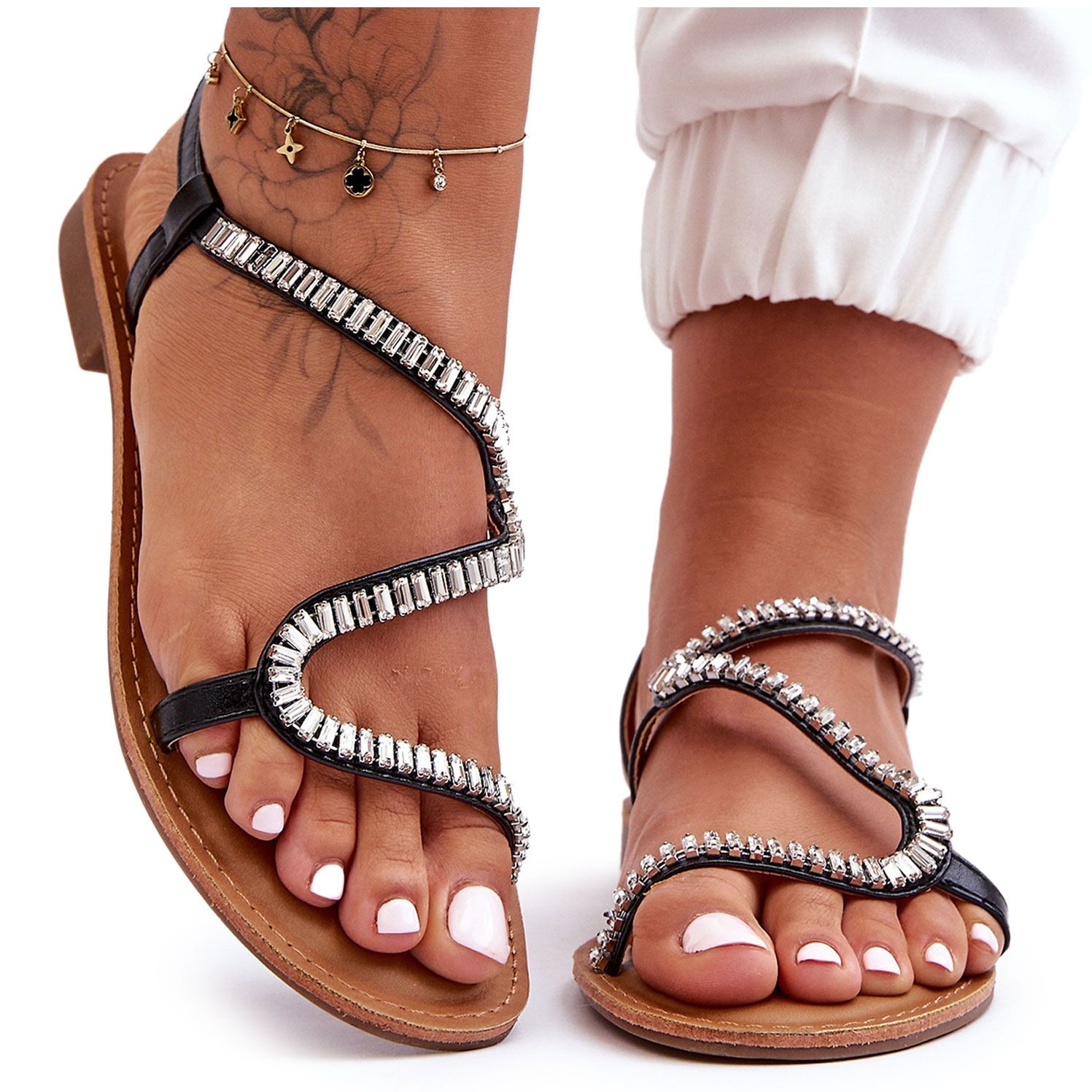 - Les décorations douces font des sandales adaptées aux stylisations quotidiennes et plus élégantes.