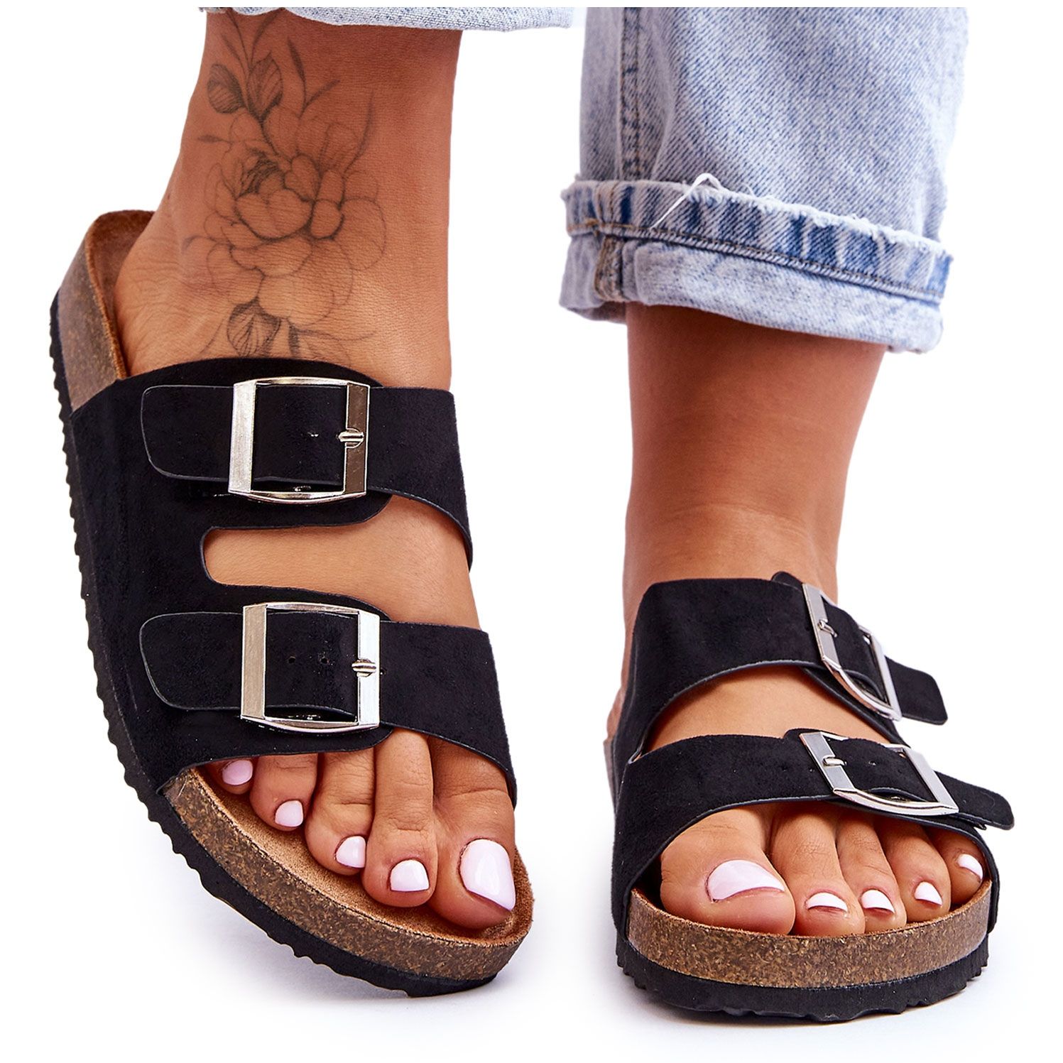 Les tongs noires Destino Slip-On pour femmes de FB1 allient élégance et confort. Fabriquées en cuir suédé écologique de haute qualité, les tongs satisferont tous les amateurs de chaussures confortables mais élégantes pour le printemps et l'été.