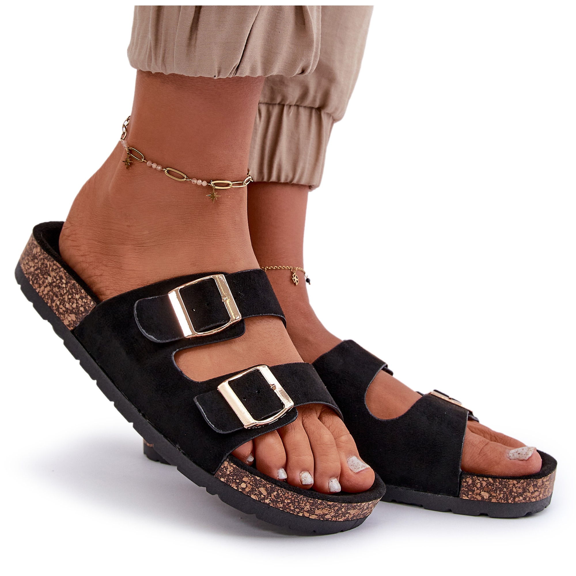 Détails: Sandales à enfiler pour femmes sur semelles en liège Noir Cortina le noir