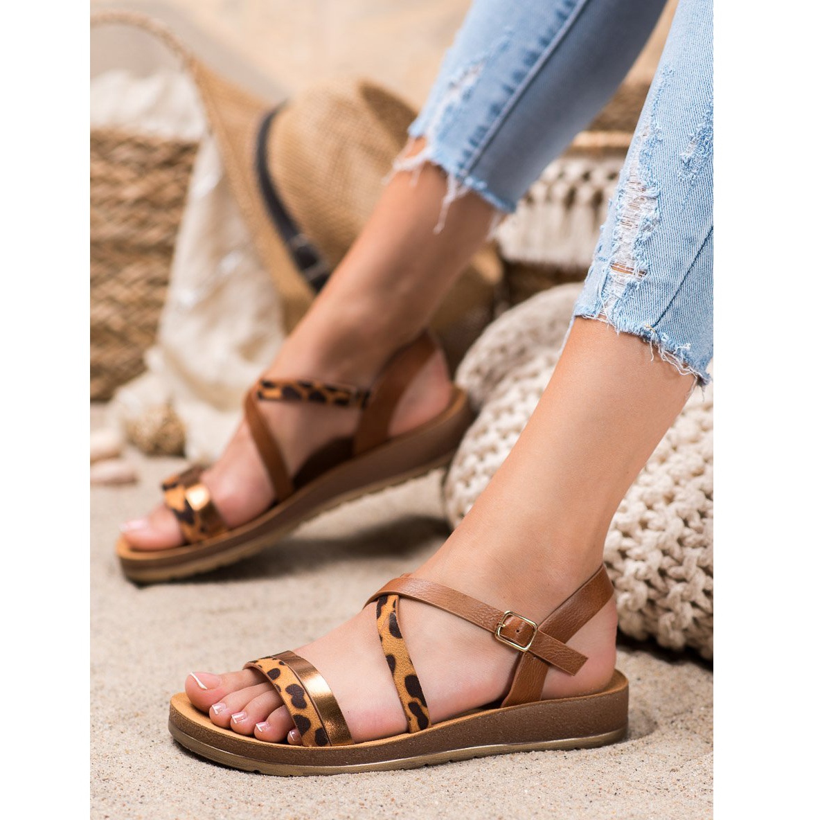 Détails: SHELOVET Sandales à imprimé léopard brun