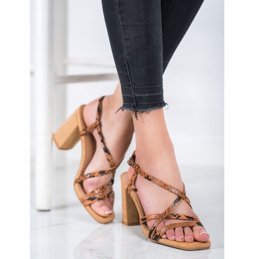 Découvrez l'élégance et le style avec ces sandales à talons hauts marron signées Kylie, qui attirent l'attention grâce à leur motif imprimé serpent en relief unique. Fabriquées en cuir écologique, ces sandales pour femmes allient design tendance et confort de port. Les fines brides de la tige s'enroulent subtilement autour du pied et la fermeture à boucle dorée ajoute de l'élégance et un caractère unique.