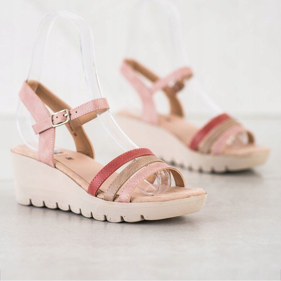Ces élégantes sandales compensées sont parfaites pour compléter les styles décontractés du quotidien, tout en garantissant la confiance dans vos pas lors des promenades estivales ou des week-ends hors de la ville. Une caractéristique caractéristique du modèle est une cale stable de 7,5 cm de hauteur, qui allonge élégamment les jambes, et une plateforme de 2 cm, garantissant le confort même après une utilisation prolongée.