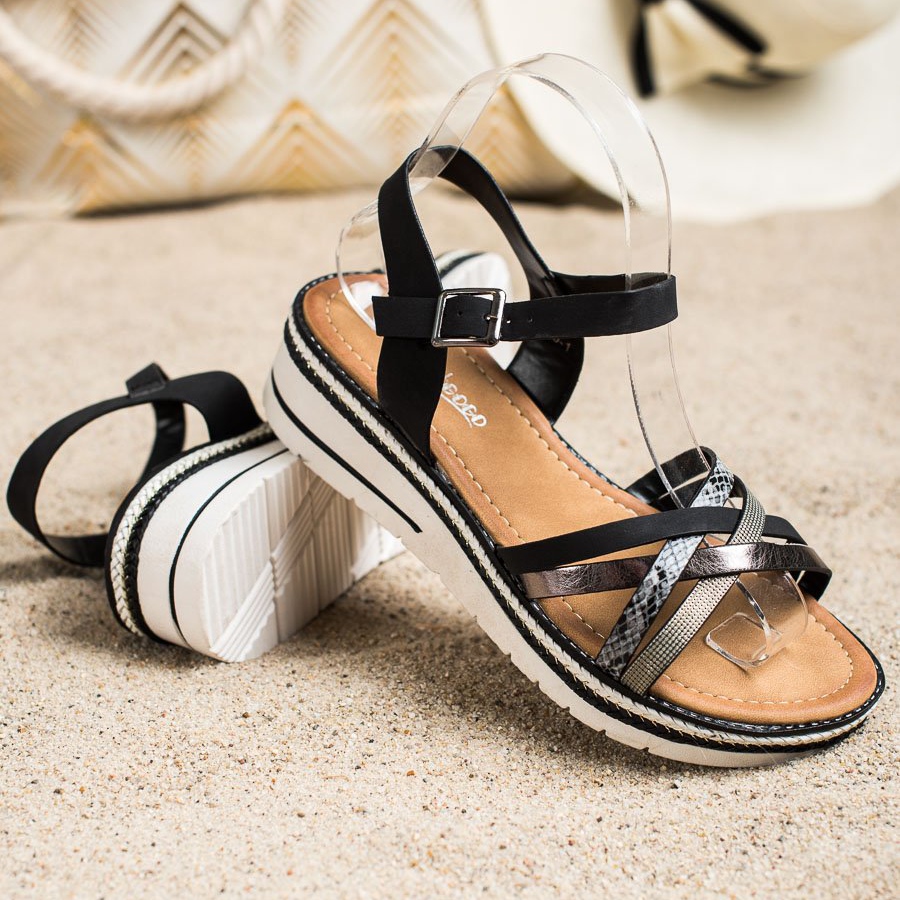 Détails: Groto Gogo Sandales à la mode sur un coin bas le noir gris