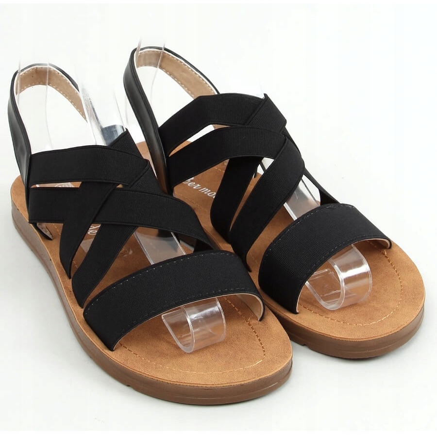 Inna marka Sandales à lanières en caoutchouc noir 9225 Noir le noir