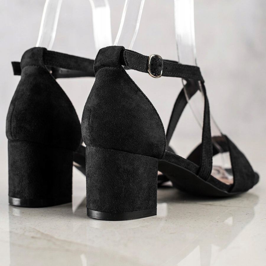 Nous vous présentons les sandales noires à brides de la marque Sergio Leone, qui s'intégreront parfaitement aux styles estivaux. Fabriqués en cuir suédé écologique de haute qualité, ils allient élégance et confort. Leur design classique avec bout ouvert et talon intégré, orné d'une boucle dorée au poignet, en fait un choix parfait pour diverses occasions, des soirées aux célébrations.