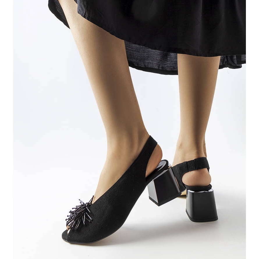 - Modèle: Sandales en daim noir avec perles 4712/003-P