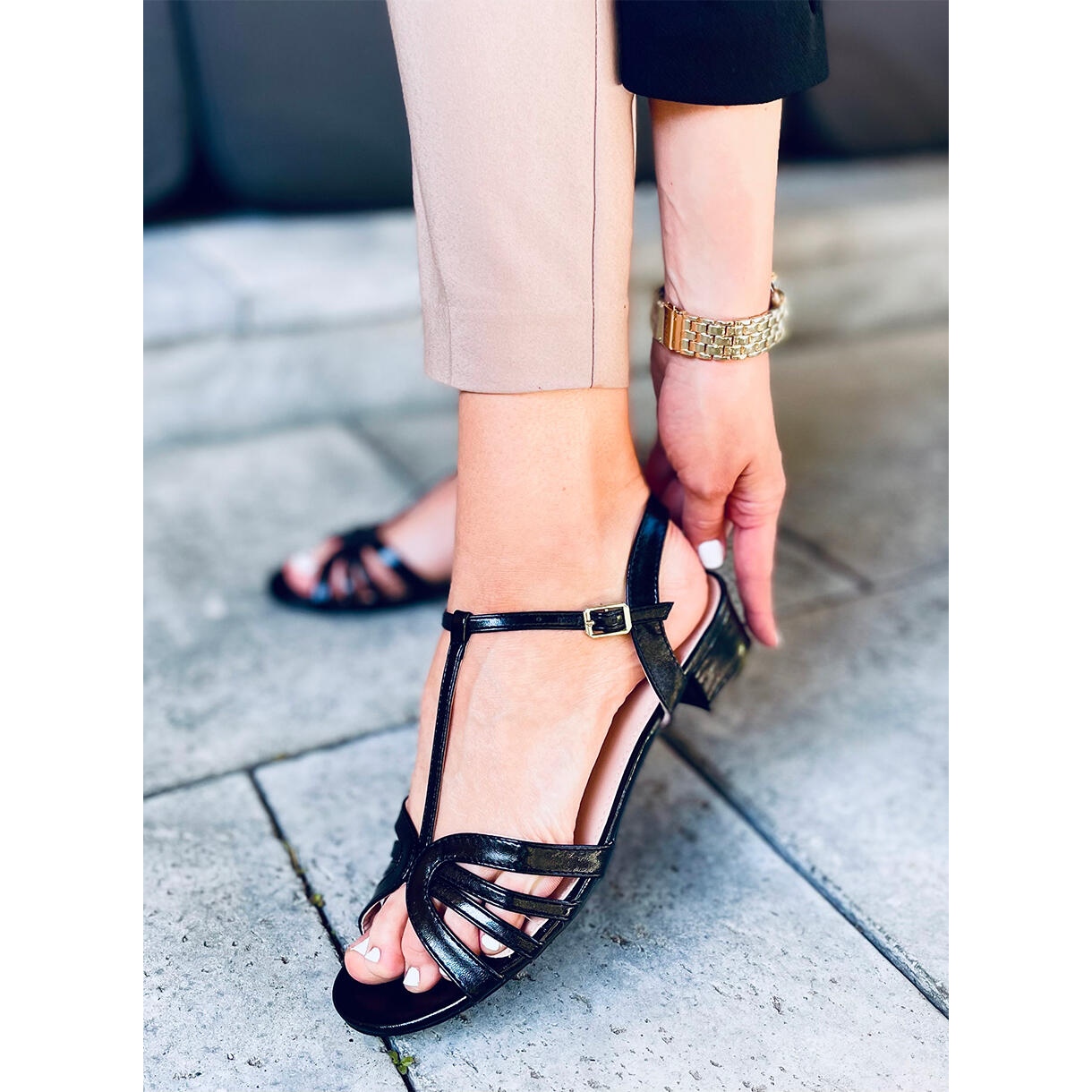 Découvrez les sandales à talons bas Sparkle Black uniques qui allient parfaitement élégance et confort. Ces sandales noires pour femme en grain-grain sont un incontournable pour toute femme à la mode qui veut avoir du style au quotidien. Grâce au talon large de 3,5 cm, vous augmenterez non seulement vos chances d'attirer l'attention, mais vous ressentirez également un confort sans précédent à chaque pas.
