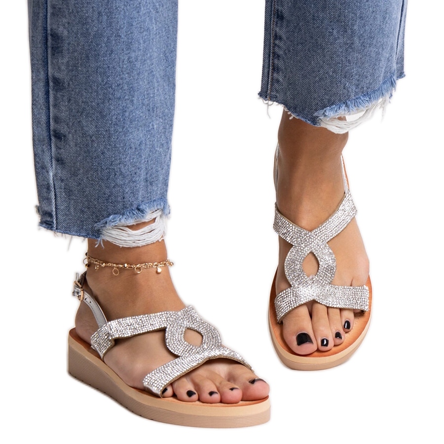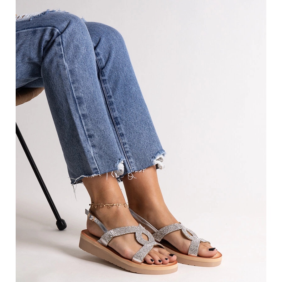 Détails: Sandales à plateforme argentées avec strass Mifsa
