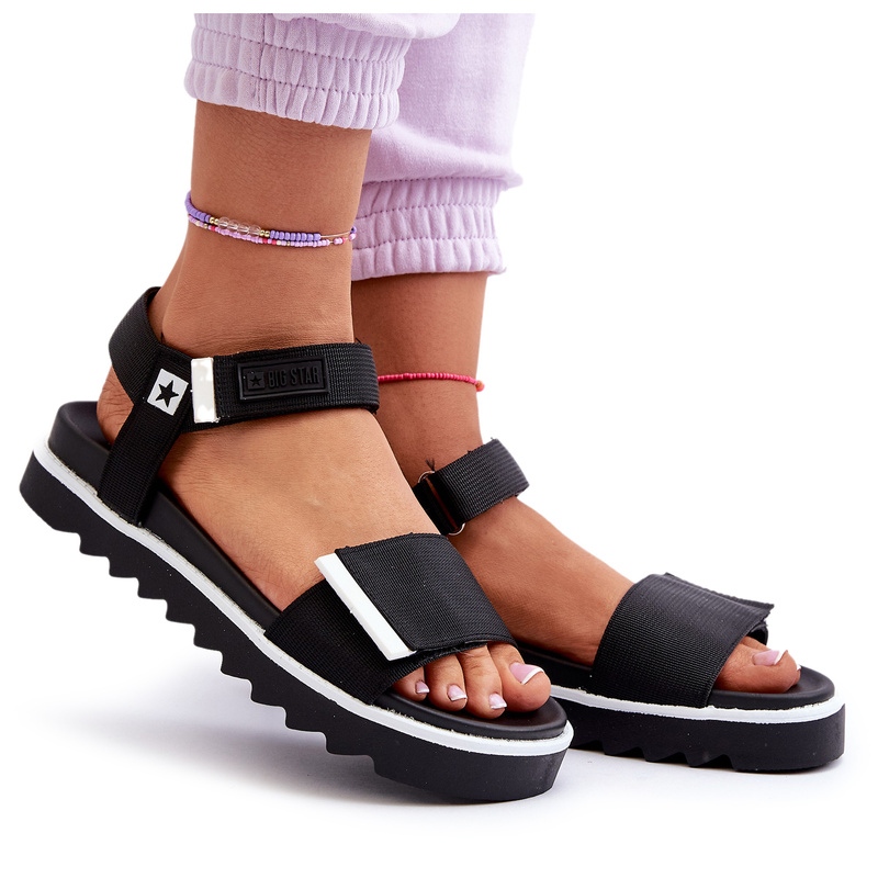 Les sandales féminines sur la plate-forme Big Star NN27477 en noir sont une proposition idéale pour les journées d'été chaudes. Ces sandales combinent le design moderne avec des fonctionnalités, ce qui les rend non seulement élégants, mais aussi très confortables. Fabriqués en matériau textile de haute qualité, ils offrent un confort et une ventilation appropriée.