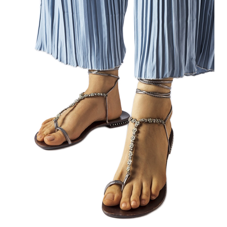 Sandales gris foncé avec zircons troghi - style et confort pour l'été
