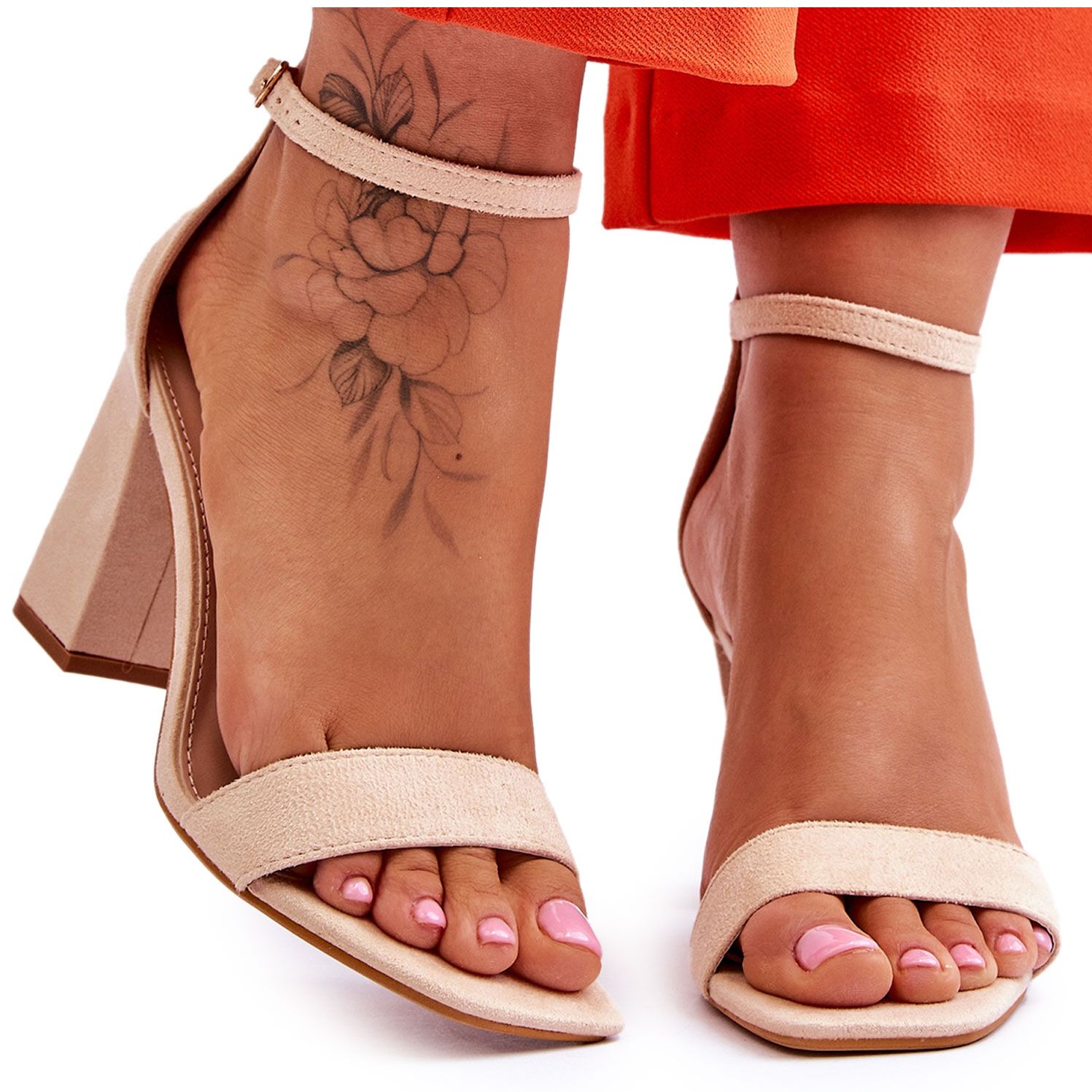Détails: Sandales à Talon Stable pour Femme Beige Lavissa brun