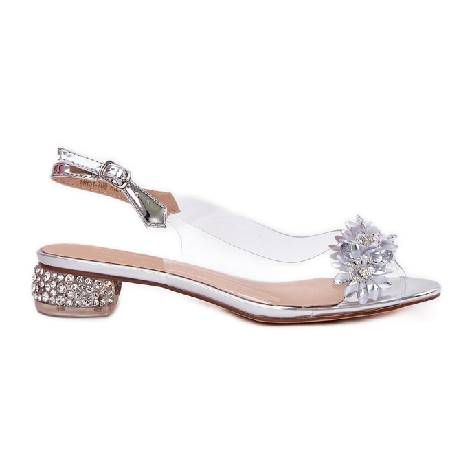 Détails: S.Barski Sandales à talons à talons transparents avec décoration d'argent MR51-709