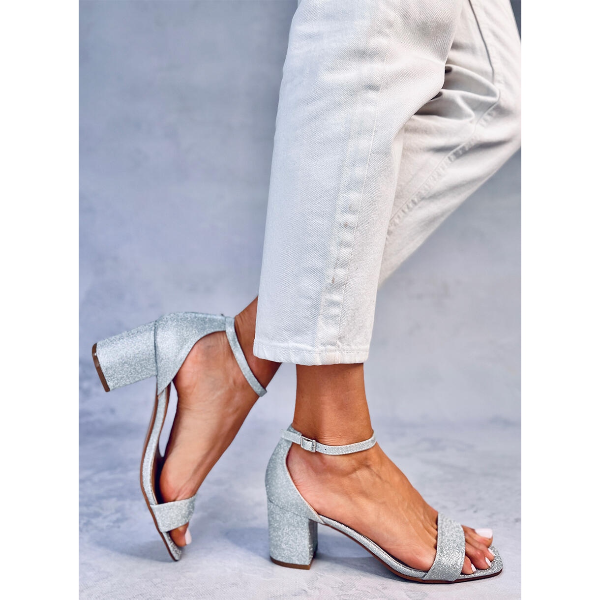 Détails: Sandales à talons argentées Meghan