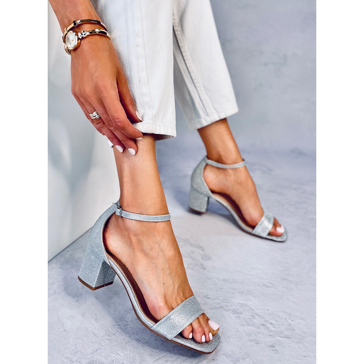 Ce modèle séduit par une belle finition chatoyante qui attire l'attention et fait de vous la star de toute occasion. Les sandales ont été conçues dans un souci de confort : un large talon haut de 6 cm assure la stabilité, ce qui signifie que vous pouvez profiter de chaque pas sans sacrifier l'élégance. Le fermoir réglable souligne la cheville, ajoutant élégance et féminité.