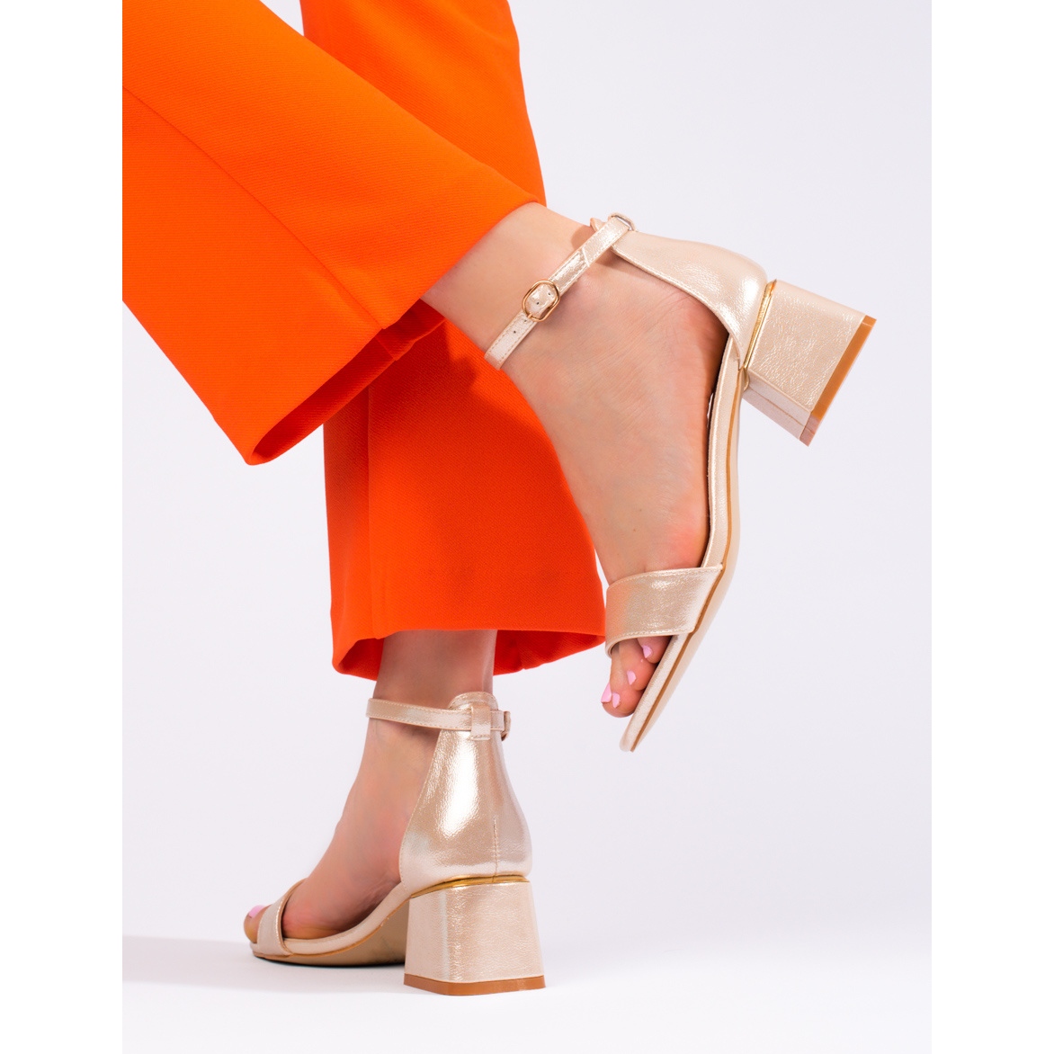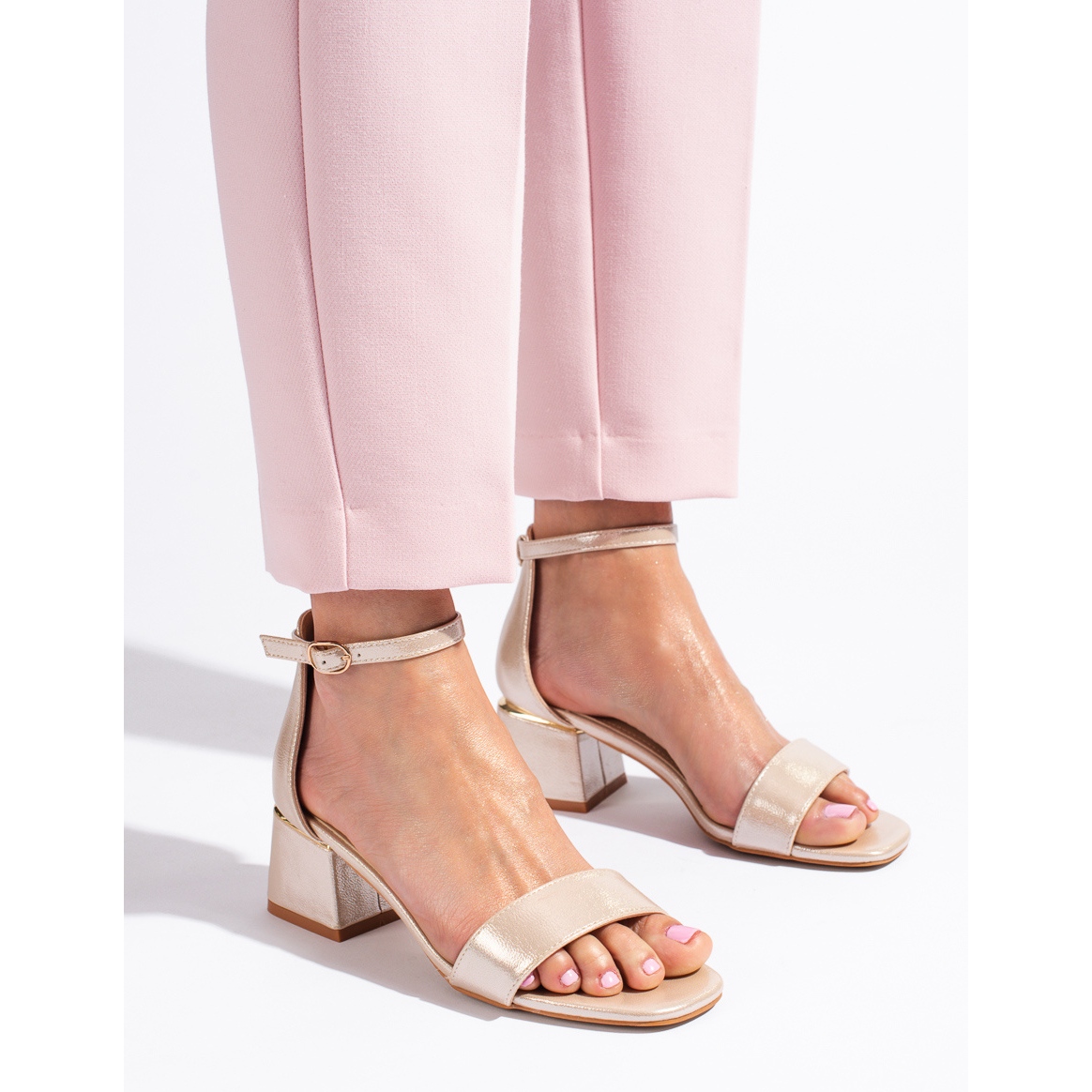 Détails: Sandales à talons bas classiques dorées de Vinceza d'or