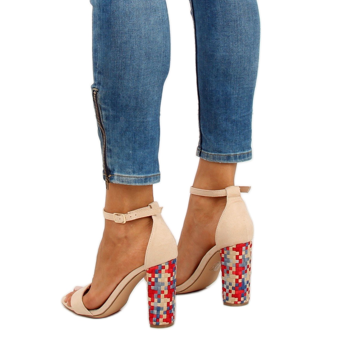 Inna marka Sandales à talons beiges 708-24 Beige brun multicolore