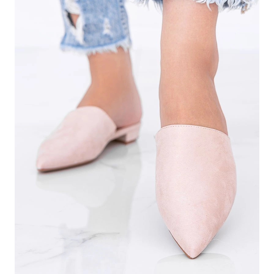 Découvrez le modèle Santiago - tongs subtils en cuir écologique en daim dans une teinte nude intemporelle. Le front de construction avec un nez dans le Spitz a éliminé optiquement le pied, et le poteau bas de 2 cm ajoute de l'élégance à la coupe, tout en assurant le confort de porter tous les jours.