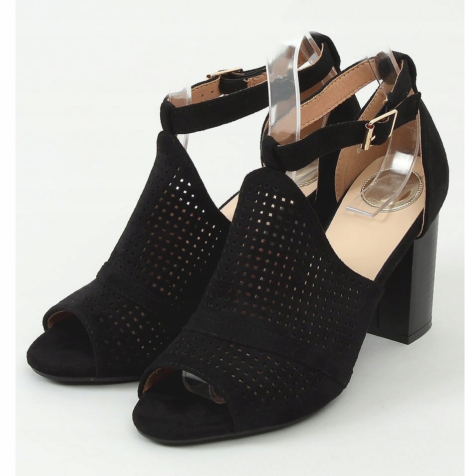 Inna marka Sandales à talons bout ouvert noires CZ-10220 Noir le noir