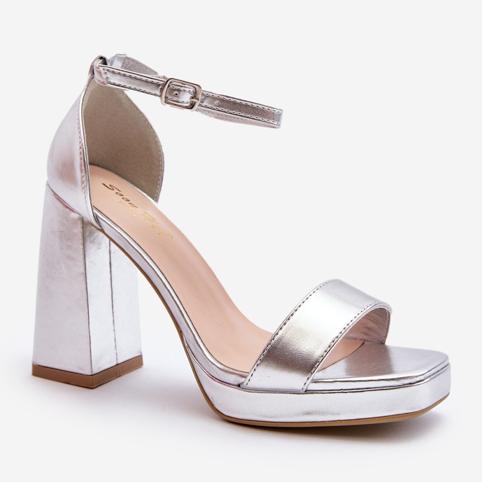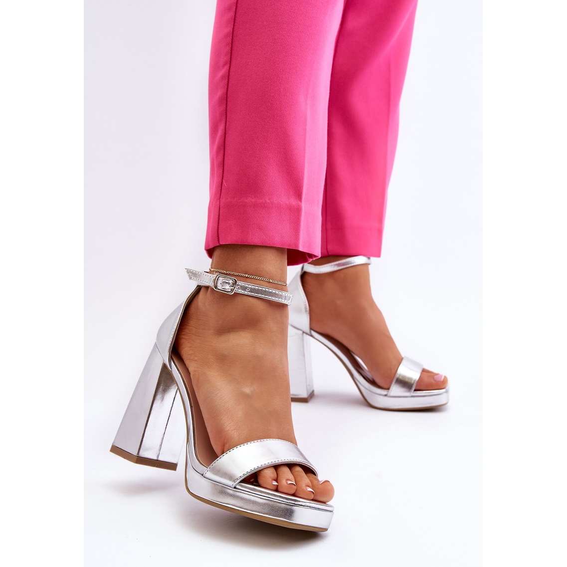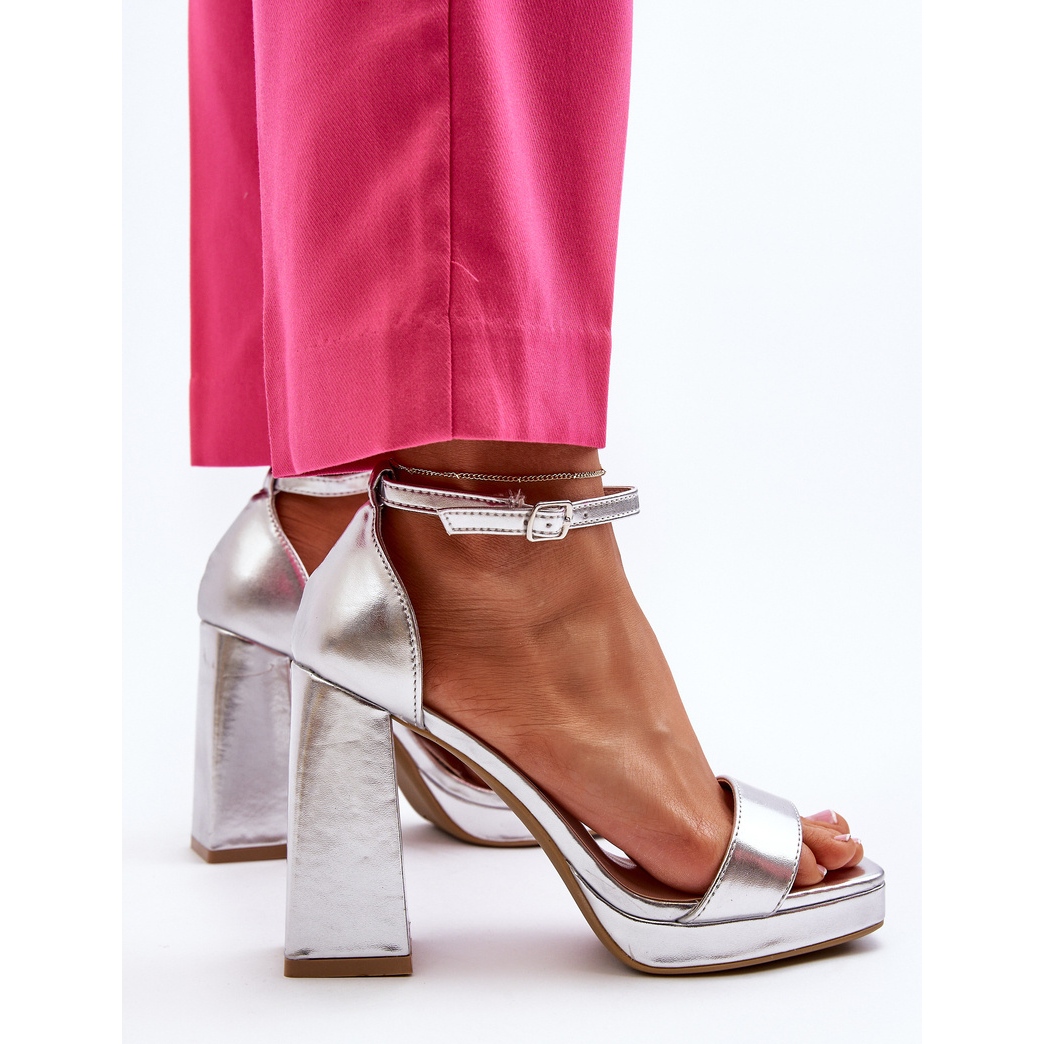 Détails: Sandales à talons carrés Merila argentées à la mode