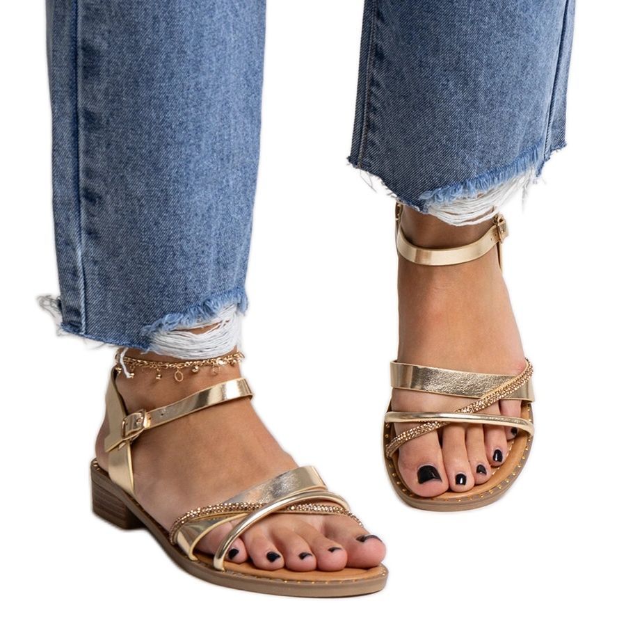 Détails: Sandales à talons dorées avec zircons cubiques Elanoria