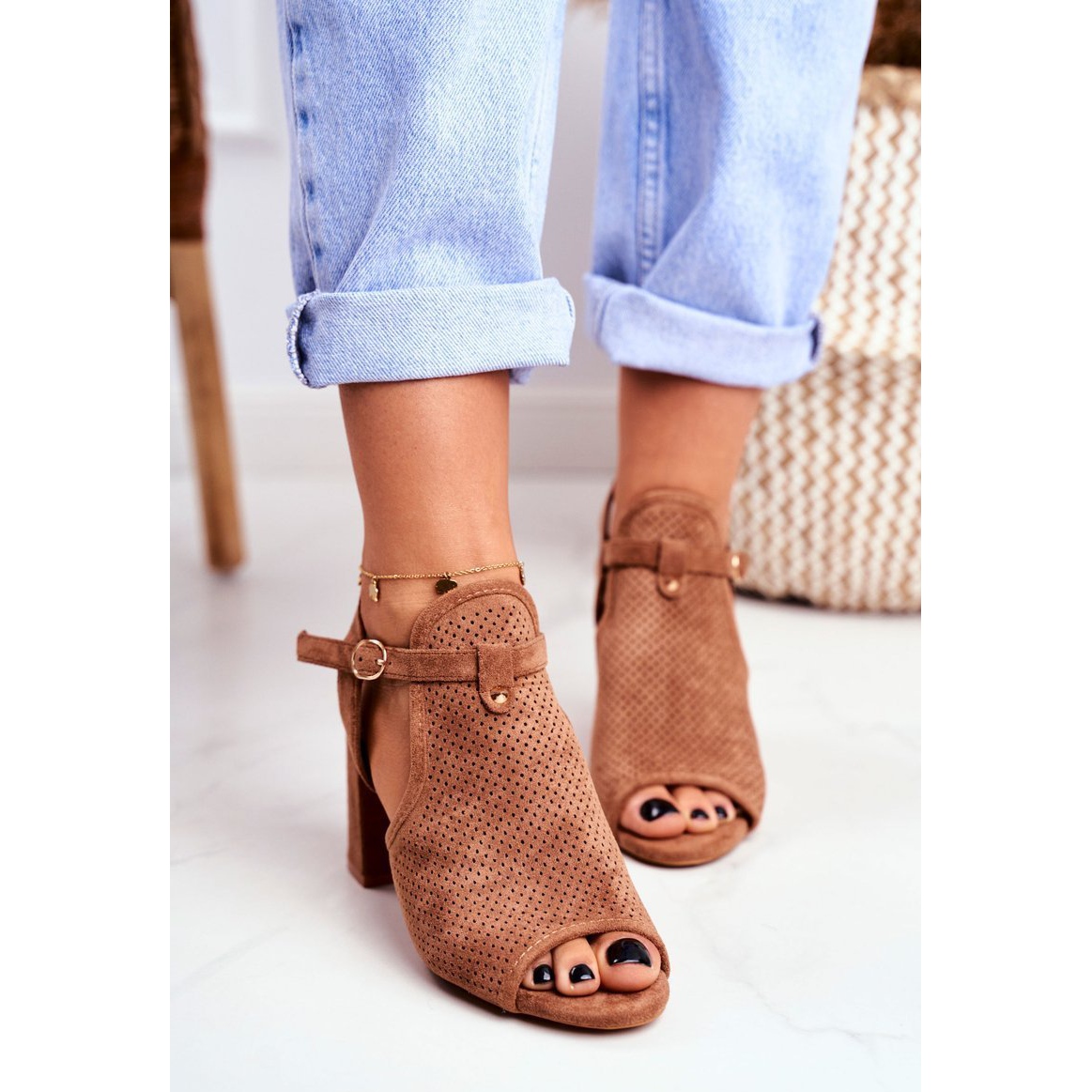 **BUGO Sandales Femme Sur Talon Haut Ajouré Marron Kira**
